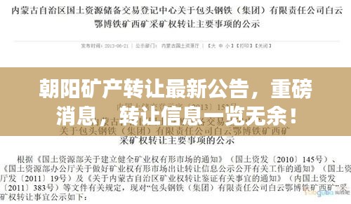 朝陽礦產(chǎn)轉(zhuǎn)讓最新公告,重磅消息,轉(zhuǎn)讓信息一覽無余!