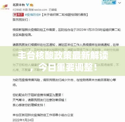 隨著全球疫情防控形勢(shì)的嚴(yán)峻,核酸檢測(cè)成為了防控疫情的重要手段之一,針對(duì)當(dāng)前形勢(shì),豐臺(tái)區(qū)的核酸政策也在不斷地調(diào)整和完善,本文將圍繞“今日豐臺(tái)核酸政策最新”這一主題,為大家詳細(xì)解讀豐臺(tái)區(qū)的最新核酸政策。