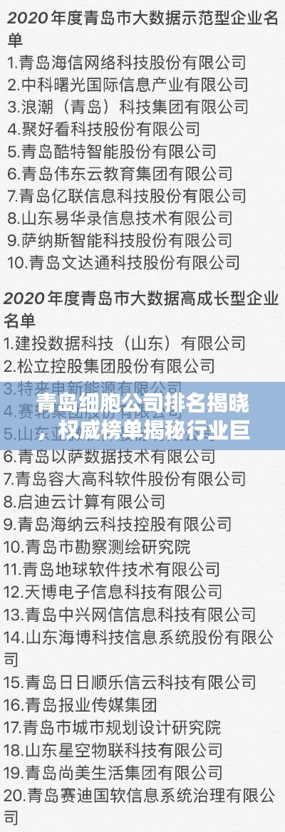 青島細(xì)胞公司排名揭曉,權(quán)威榜單揭秘行業(yè)巨頭