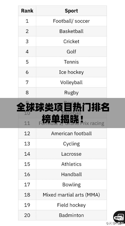 全球球類項目熱門排名榜單揭曉!