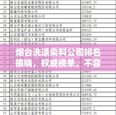 煙臺(tái)洗滌染料公司排名揭曉,權(quán)威榜單,不容錯(cuò)過(guò)!