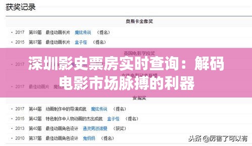 標(biāo)題:深圳影史票房實(shí)時(shí)查詢:解碼電影市場脈搏的利器