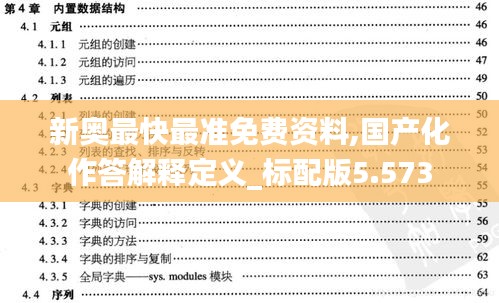 “新奧最快最準(zhǔn)免費(fèi)資料”是一個(gè)專為澳門市場設(shè)計(jì)的資料平臺(tái),匯集了最新的行政法規(guī)、行業(yè)指導(dǎo)文件以及相關(guān)政策解讀。此平臺(tái)的愿景是成為澳門居民和企業(yè)獲取政策信息的首選渠道,提供最快、最準(zhǔn)的免費(fèi)資料。其中,“國產(chǎn)化作答解釋定義_標(biāo)配版5.573”作為一項(xiàng)特色服務(wù),致力于為政策文件提供深入、細(xì)致、易懂的國產(chǎn)化解讀,幫助用戶理解政策背后的深層含義和具體要求。