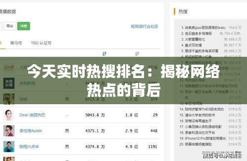 今天實(shí)時(shí)熱搜排名:揭秘網(wǎng)絡(luò)熱點(diǎn)的背后