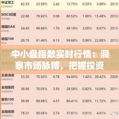 標(biāo)題:中小盤(pán)指數(shù)實(shí)時(shí)行情:洞察市場(chǎng)脈搏,把握投資時(shí)機(jī)